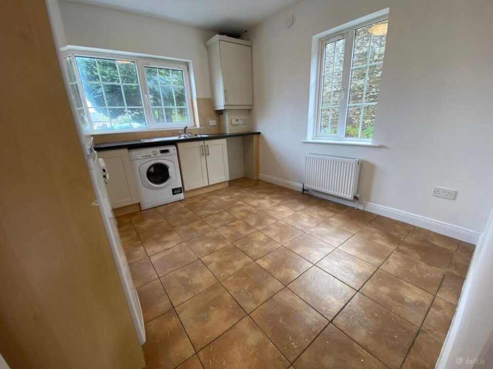 Tiled floor, fitted kitchen, stainless steel sink and drainer, washing machine, electric cooker and hob, fridge freezer, plumbed for dishwasher.