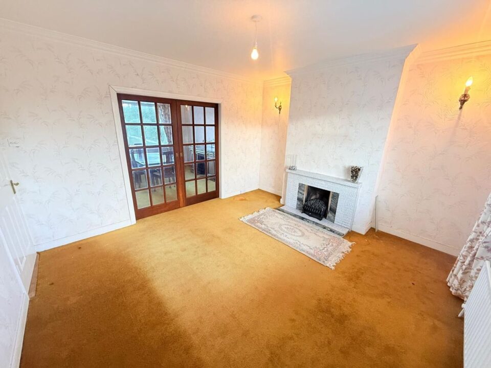 Sitting Room: 4.2m x 3.6m Carpeted and overlooking the private rear garden, tiled fireplace with electric fire insert.
