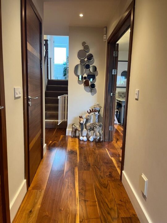 Solid walnut flooring.