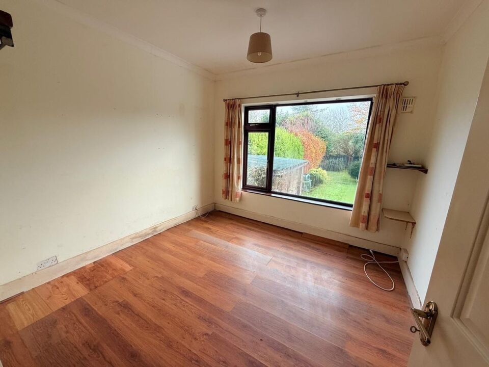Double bedroom with timber effect flooring, overlooking the rear garden.