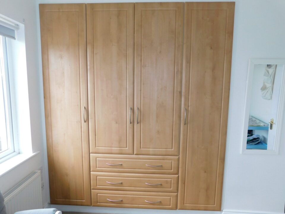 Bedroom 2 – 3.4m x 4.1m Double bedroom with built in storage. Carpeted floor.
