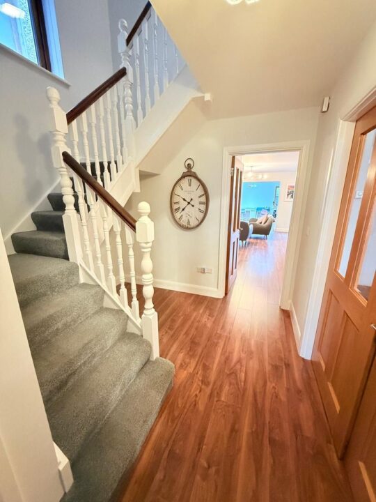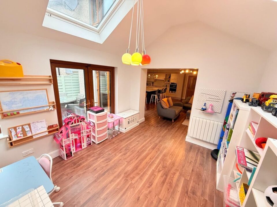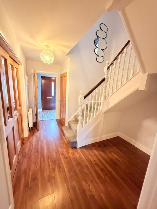 This is a beautiful, well proportioned family home which extends to 160 sq.m (1722 sq.ft) On the ground floor, the home features a living room, playroom/sitting room, a spacious kitchen/dining area with double doors leading to an enclosed rear garden, a utility room, and a guest WC. Upstairs there are four double bedrooms, an en-suite bathroom, a walk-in wardrobe, and the main bathroom. The house has triple glazed windows and solar panels.