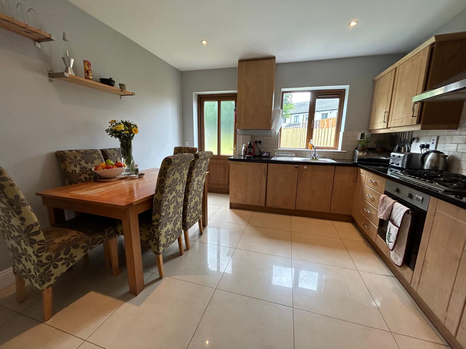 Tiled floor, fully fitted kitchen with appliances and stainless steel sink & drainer.