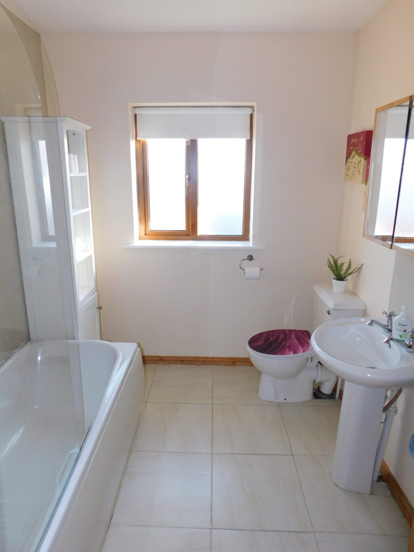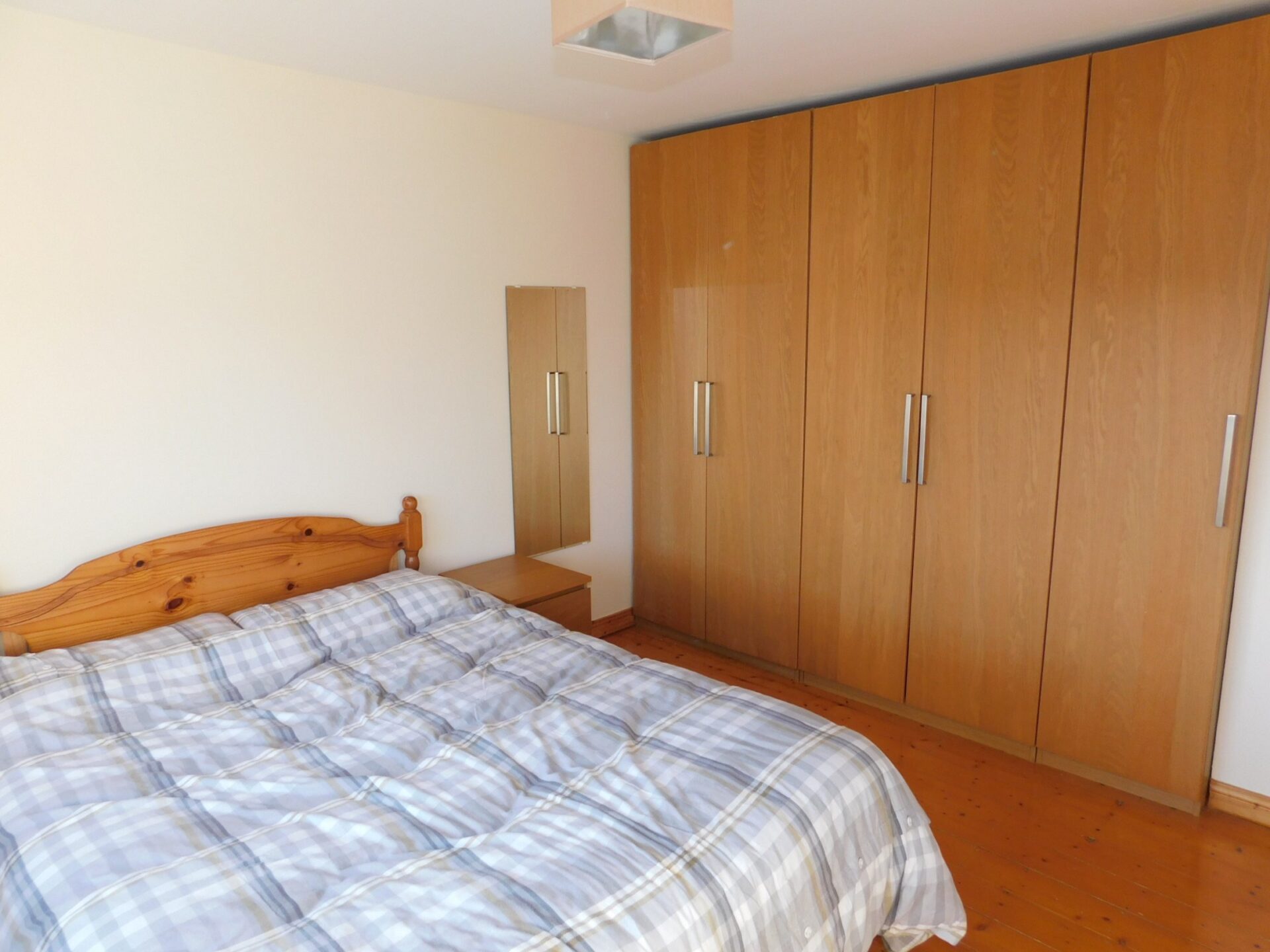 Entrance Hallway – 2.0m x 4.5m Timber flooring and carpeted stairs Lounge: – 4.5m x 3.5m Front living room with solid wood flooring, open fireplace and bay window Kitchen/Dining room: – 5.6m x 3.5m Open plan room with solid wood kitchen units, breakfast bar and a dining area. Tiled floor. Sliding doors to rear garden. Guest WC: – 2.0m x 1.0m Downstairs guest toilet with tiled floor. Bedroom 1: – 3.6m x 3.5m Bright double bedroom with built in wardrobes. Timber flooring. Bedroom 2: – 3.5m x 3.5m Double bedroom with built in wardrobe. Timber flooring. Bedroom 3: – 2.4m x 2.6m Single bedroom with timber flooring. Bathroom – 2.4m x 2.0m 4 Piece suite with bath and electric shower. Tiled floor.