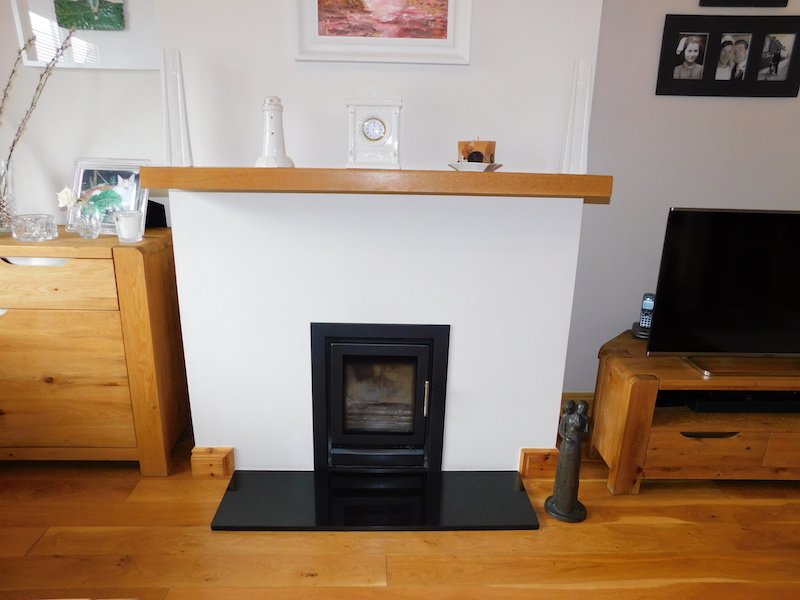 Lounge – 4.4m x 3.4m Bright living room with open fireplace with fitted solid fuel stove and timber flooring.