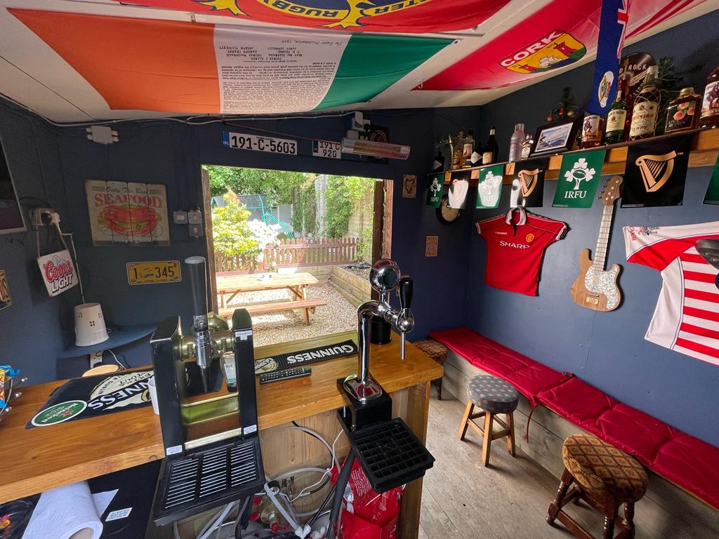 GARDEN: Stylish, paved patio leading onto a garden laid out to lawn. Private and not overlooked, enclosed with walls and fencing. Side access to the front via wooden gate. Also situated adjacent to the house is a large, insulated, timber shebeen with working lager & stout taps – ideal for entertaining.