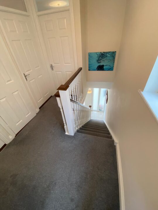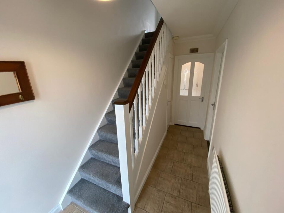 Palladio treble lock front door, tiled flooring, stairs and landing carpeted, WC.