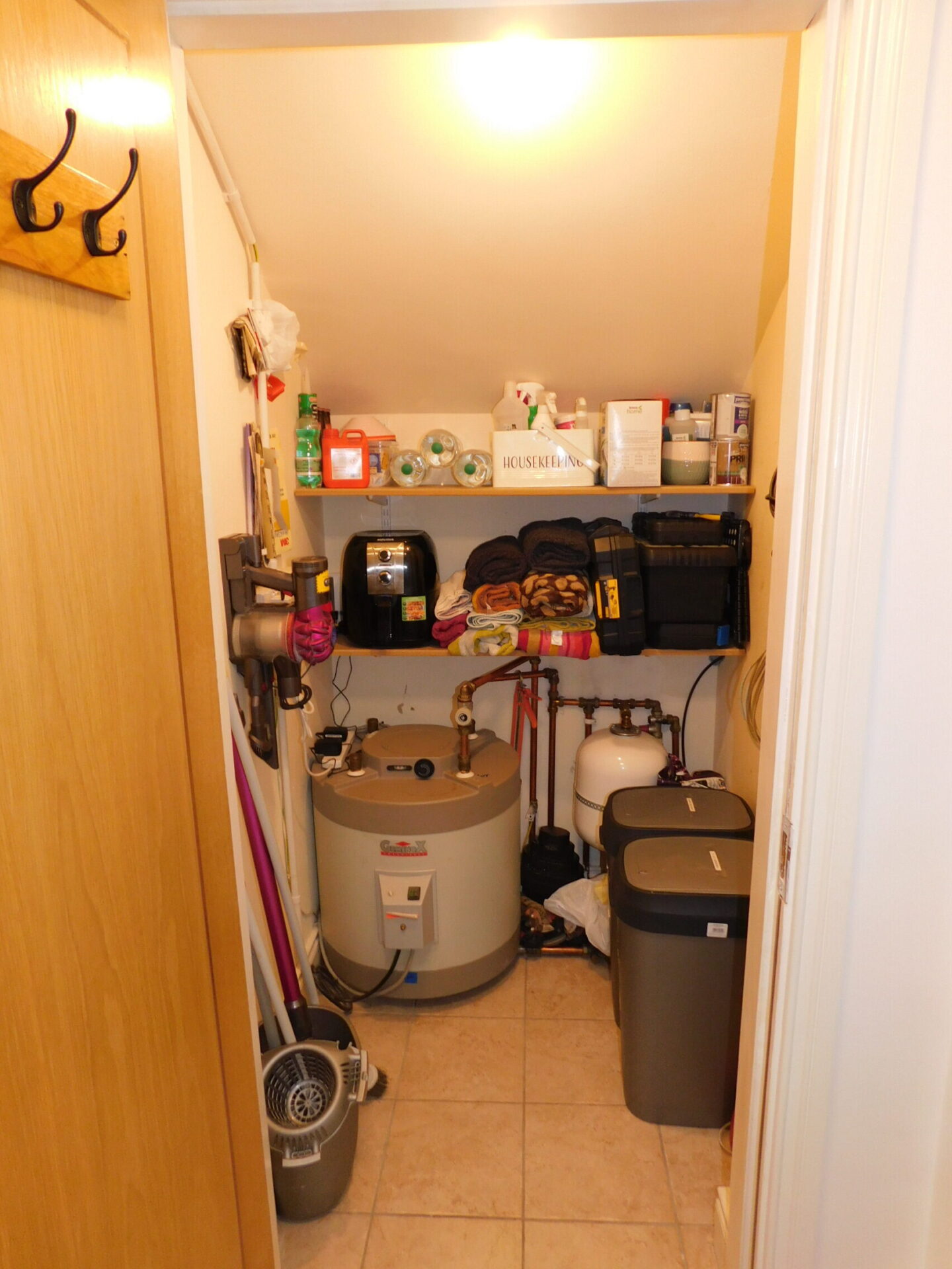 Entrance hall with tiled floors and storage press