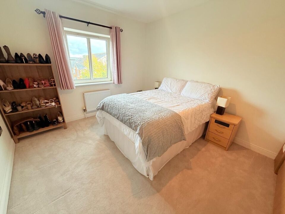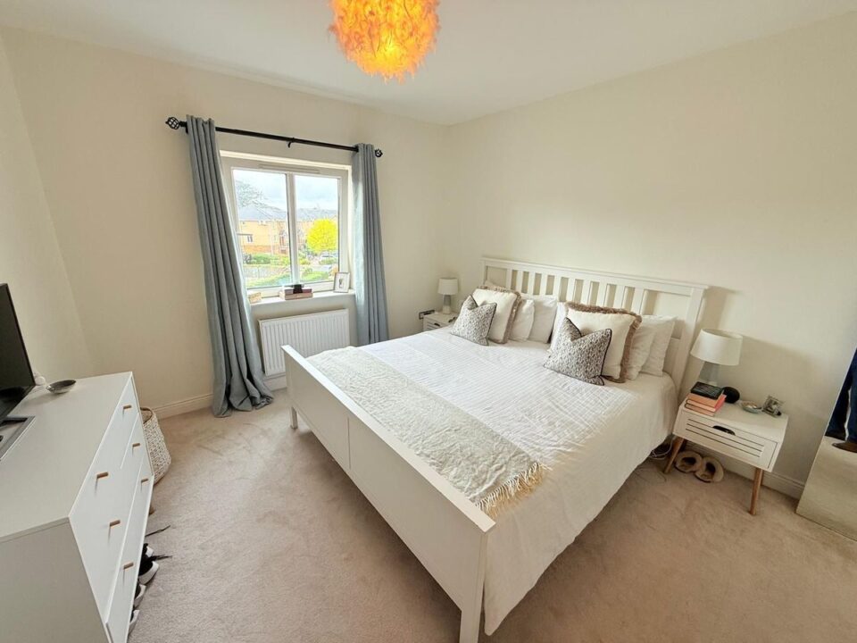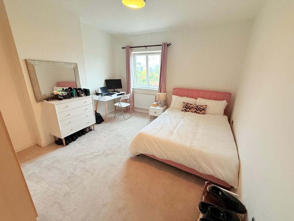 Front-facing double room with carpet flooring, built-in wardrobes, and access to a private ensuite.