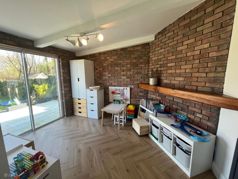 The property has received a full makeover in 2023/2024, which includes elegant style flooring in the hallway, a stylish WC, closet, storage cupboard under stairs, solid timber flooring, recessed lighting, new bespoke fitted kitchen, newly installed radiators, open plan kitchen/dining/playroom.