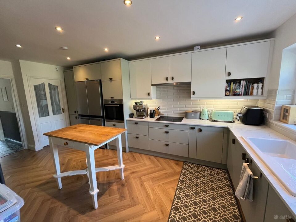 This impressive, fully renovated kitchen (February 2024) has been thoughtfully designed and finished to a high standard, featuring a bespoke fitted kitchen installed by Costello Kitchens, Cork. The space offers an abundance of storage, including several well-appointed pantries, complemented by integrated lighting throughout.