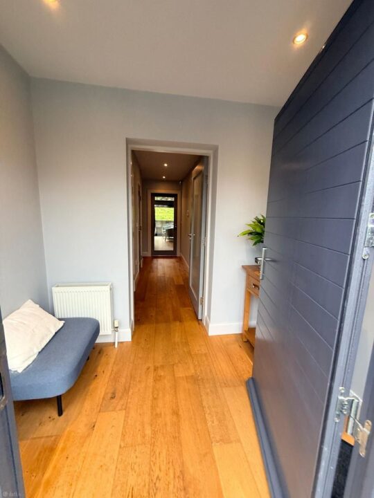 Entrance porch : Solid oak flooring , radiator, recess lights. Glass panelled door to hallway.