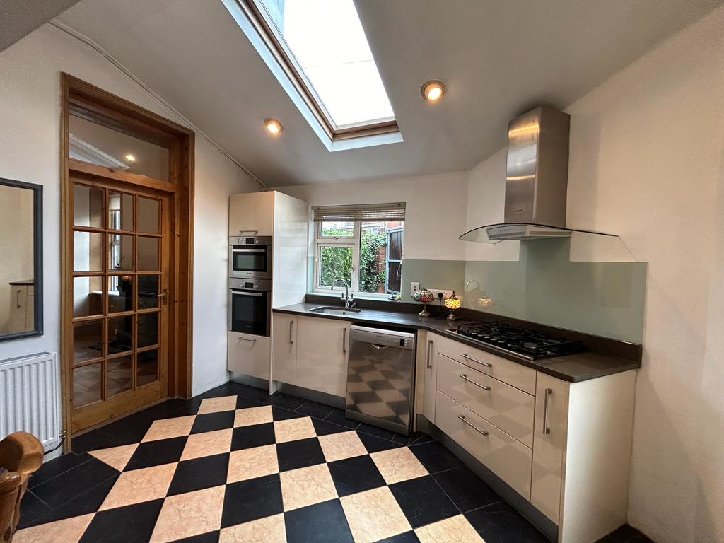 Fitted kitchen with stainless steel sink & drainer, Bosch Electric cooker ,Bosch microwave – grill oven, American Fridge freezer, dishwasher Door to back garden, the kitchen benefits from two kitchen windows.
