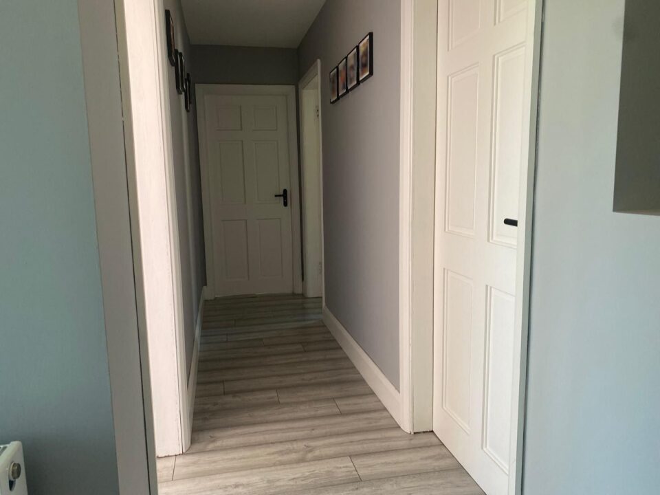 uPVC treble lock door, laminated flooring, storage.